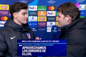 体育资讯3月11日讯 欧冠1/8决赛首回合,马竞主场5比2大胜热刺。赛后,马竞前锋胡利安·阿尔瓦雷斯接受了TNT体育的采访。