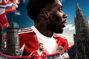 拜仁官方社媒发布了为此役制作的海报,莱默尔、戴维斯、堂安律出镜。