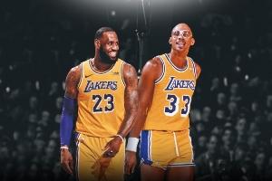 比赛首节6分36秒,詹姆斯快攻完成空接暴扣!此球命中后,詹姆斯追平贾巴尔!